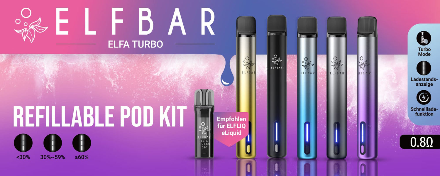 Allen Einsteigern legen wir unsere Kategorie Elfbar Pods Elfa besonders ans Herz. Hier findet jeder Einsteiger eine einfach bedienbare Pod E Zigarette, die keine Wartung benötigt und die man ohne Voreinstellungen und Vorkenntnisse sofort dampfen kann. Andere Shop Kategorien enthalten kompatible Elfa Pods, wie die Allmassiva Pods: einfach in den Warenkorb legen uns bestellen. Wer die einfachen Varianten erstmal ausprobieren möchte, ob das Dampfen von Vapes eine geeignete Alternative zum Rauchen ist, sich aber von der Auswahl überfordert fühlt, kann dies zum Beispiel auch einfach mit Einweg E Zigaretten wie einer Elf Bar Einweg E Zigarette ausprobieren. Umweltbewussteren Dampfern empfehlen wir die Prefilled Pods von zum Beispiel Elfbar ELFA. Hier kann der Akku (erhältlich in verschiedenen Farben) immer wieder aufgeladen werden, die vorbefüllten Elfa Pods müssen nach Verbrauch lediglich ausgetauscht werden. Natürlich können Sie in unserem Shop auch die Elfbar Elfa Pods Nikotinfrei günstig kaufen. Vapes und Vorbefüllte Pods von anderen Herstellern finden Sie in unseren Kategorien Vapes bzw. Elfa kompatibel. Bei Fragen wenden Sie sich einfach an unseren Support, hier werden Sie von langjährigen passionierten Dampfern bestmöglich und kompetent beraten.